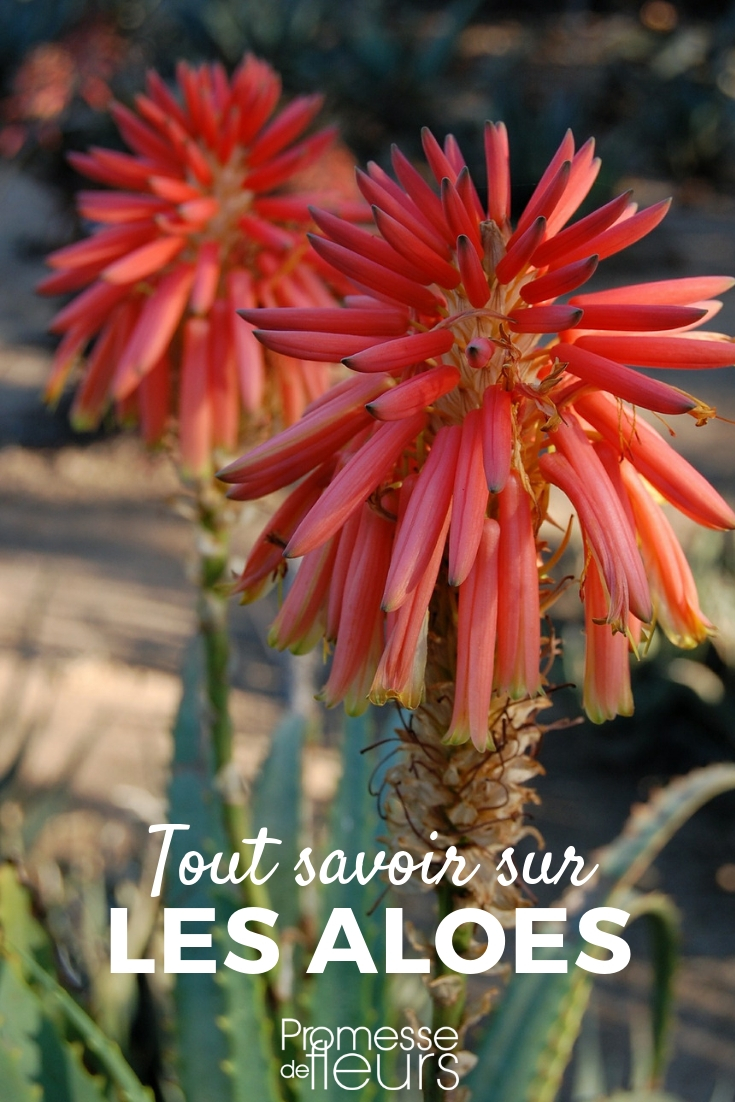 Cuando florecen, los Aloe ofrecen impresionantes espigas. Están formadas por numerosas flores de colores vivos, brillantes. A menudo son amarillas, naranjas o rojas. La floración recuerda a la de las kniphofias. Las espigas se llevan en la cima de tallos erguidos hacia el cielo, que pueden alcanzar hasta 1 m de altura. Las flores se abren progresivamente, desde la base de la espiga hacia la parte superior. Las situadas en la parte inferior se inclinan hacia el suelo.