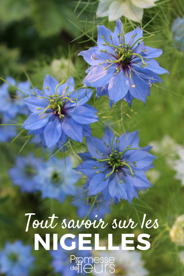 - La nigela ofrece una hermosa floración estrellada, a menudo azul, pero también blanca o rosa