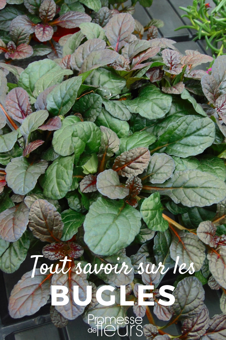 La búgula (Ajuga) es una planta perenne tapizante de la amplia familia de las Lamiáceas como la menta, la salvia o la lavanda. Crece en estado silvestre en bosques, a la linde de los bosques de montaña, praderas húmedas y zonas sombreadas y templadas de Europa, y de Asia, en particular del Cáucaso y de Irán. Ella está extendida en hábitats frescos y sombreados de nuestras regiones, pero resulta más rara en la fachada mediterránea, donde teme el calor solar tanto como la sequía.