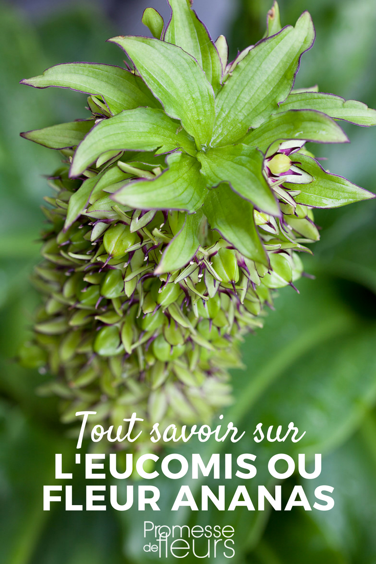 La Eucomis es una bonita bulbosa de Sudáfrica, que aporta mucho exotismo a los massifs en verano. Llamada «Fleur ananas», tiene un toque fantasioso, un poco extraño, con inflorescencias en forma de piña… especialmente porque se trata de una planta poco común en los jardines. ¡Tiene todo para despertar la curiosidad! Aunque es fácil de cuidar, desafortunadamente es todavía poco conocida y poco cultivada… En los jardines se encuentran principalmente las especies Eucomis bicolor, comosa y autumnalis, así como las variedades de las que proceden. Las Eucomis son originales tanto por la forma de su inflorescencia, por sus colores (por ejemplo verdosos, amarillo pálido o purpúreos, mezclando en realidad varias tonalidades) y por su follaje, especialmente cuando es púrpura.
