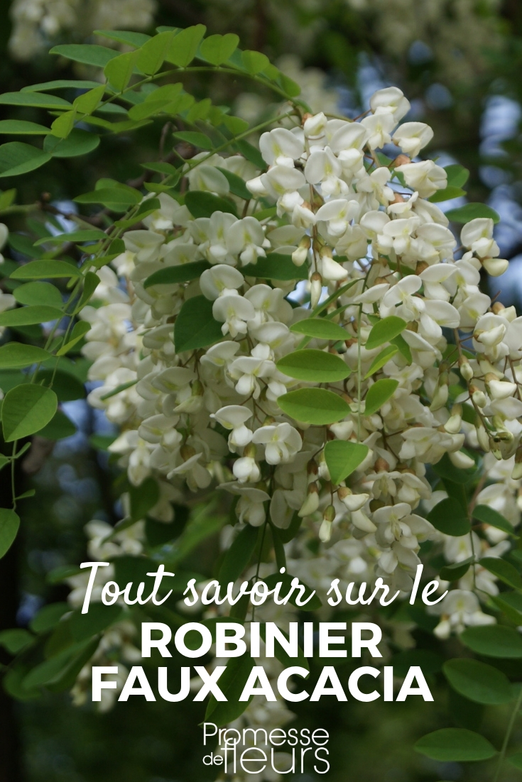 El género Robinia o falsa acacia, comprende 8 especies leñosas caducas, todas nativas de Estados Unidos y México caracterizadas por un crecimiento rápido (13 m al cabo de 20 años en R. pseudoacacia) y una muy buena tolerancia a la contaminación. La mayoría de ellas no superan 1,80 m en todas direcciones, mientras que la especie más comúnmente plantada, Robinia pseudoacacia, puede alcanzar 25 m de altura con un tronco de 60 cm de diámetro. Se multiplican a menudo por rechazos y por siembra, lo que aumenta su capacidad de extensión. Los robinier pertenecen a la familia de Fabáceas o Leguminosas, lo que les permite colonizar suelos pobres gracias a la capacidad de una bacteria, el Rhizobium, en simbiosis en las nodosidades de las raíces del árbol, para capturar el nitrógeno del aire y transformarlo en nitratos. El árbol suele plantarse para luchar contra la erosión de los suelos. El robinier falso-acacia vive aproximadamente 300 años.
