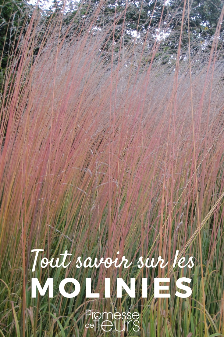 La molinia pertenece a la familia de las Poáceas ! Se trata de una familia muy extensa, que cuenta con más de 11 500 especies, incluyendo otras gramíneas ornamentales, como Pennisetum o Stipa, pero también hierbas y cereales… Es una familia de gran importancia económica y alimentaria, ya que entre ellas se halla el trigo, la cebada, el maíz y el arroz… Los bambúes, auténticas hierbas gigantes, también forman parte. Las Poáceas pueden confundirse con las Cyperáceas (familia del papiro y del Carex) y las Juncáceas (familia del junco), que también se parecen a grandes hierbas.
