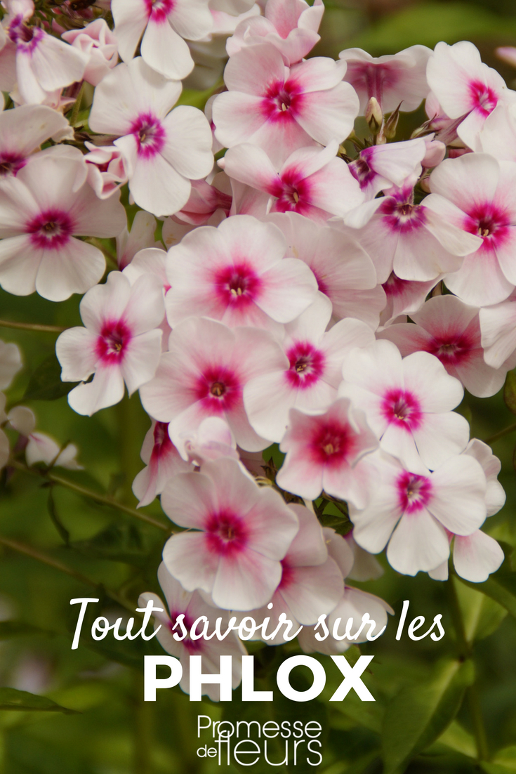 Los Phlox son plantas viváceas o anuales con floración estrellada abundante. Su forma puede ser muy diferente según las especies: los Flox musgoso enanos tienen un porte rastrero (Phlox subulata, P. douglasii) y a veces forman hermosos cubresuelos; las variedades más grandes presentan un porte erguido (Phlox paniculata) y deben instalarse más bien en macizos. Las Flox portan en primavera o en verano una multitud de flores estrelladas, en tonos a menudo rosados, azules, blancos, rojos o morados… Sus tonalidades pueden ser suaves, pastel, o bastante vivas. Son generalmente viváceas, pero existen especies anuales, como el Phlox de Drummond, Phlox drummondii. Las más populares son sin duda los flox paniculados, que se presentan en numerosas variedades hortícolas.