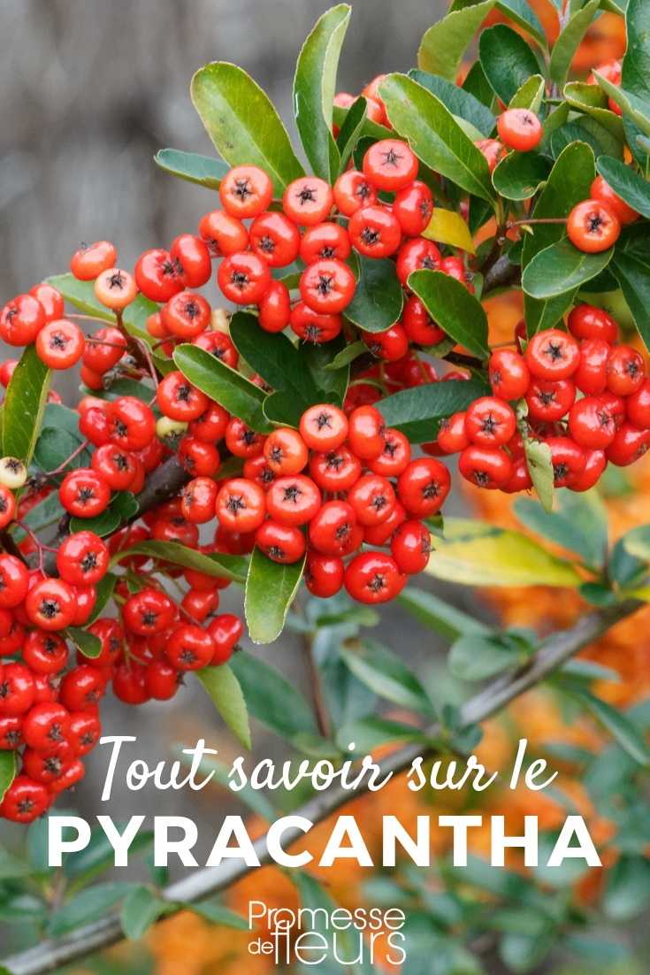 El Pyracantha o Piracanta es uno de los arbustos más decorativos que existen durante el invierno, con su primo Cotoneaster, que se distingue por un follaje de borde liso y la ausencia de espinas. El Pyracantha posee un follaje coriáceo mucho más luminoso, fino, bastante estrecho, con bordes ligeramente dentados y extremo a menudo redondeado, de un verde vivo muy brillante que realza la profusión de las bayas relucientes. Las ramas, si no se podan, caen con gracia bajo el peso de los frutos que ofrecen colores que van desde el amarillo dorado, pasando por el naranja y el rojo oscuro hasta el escarlata.