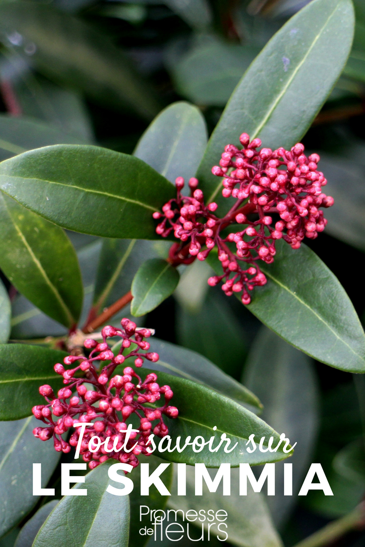 El género Skimmia reúne solo cuatro especies de arbustos encontradas en Japón, Taiwán, Filipinas y en la región del Himalaya hasta Siberia oriental. La especie japonica, originaria de Japón, de Sakhalín, de China y de Asia Sudoriental es la que ha dado los principales cultivares. Alcanza 6 m en todas direcciones en su hábitat natural de sotobosque, pero las formas hortícolas no superan mucho 80 cm a 1,50 m. Tenga en cuenta que crece en epífita sobre troncos viejos de Cryptomeria japonica en particular en la isla de Yakushima (Japón).